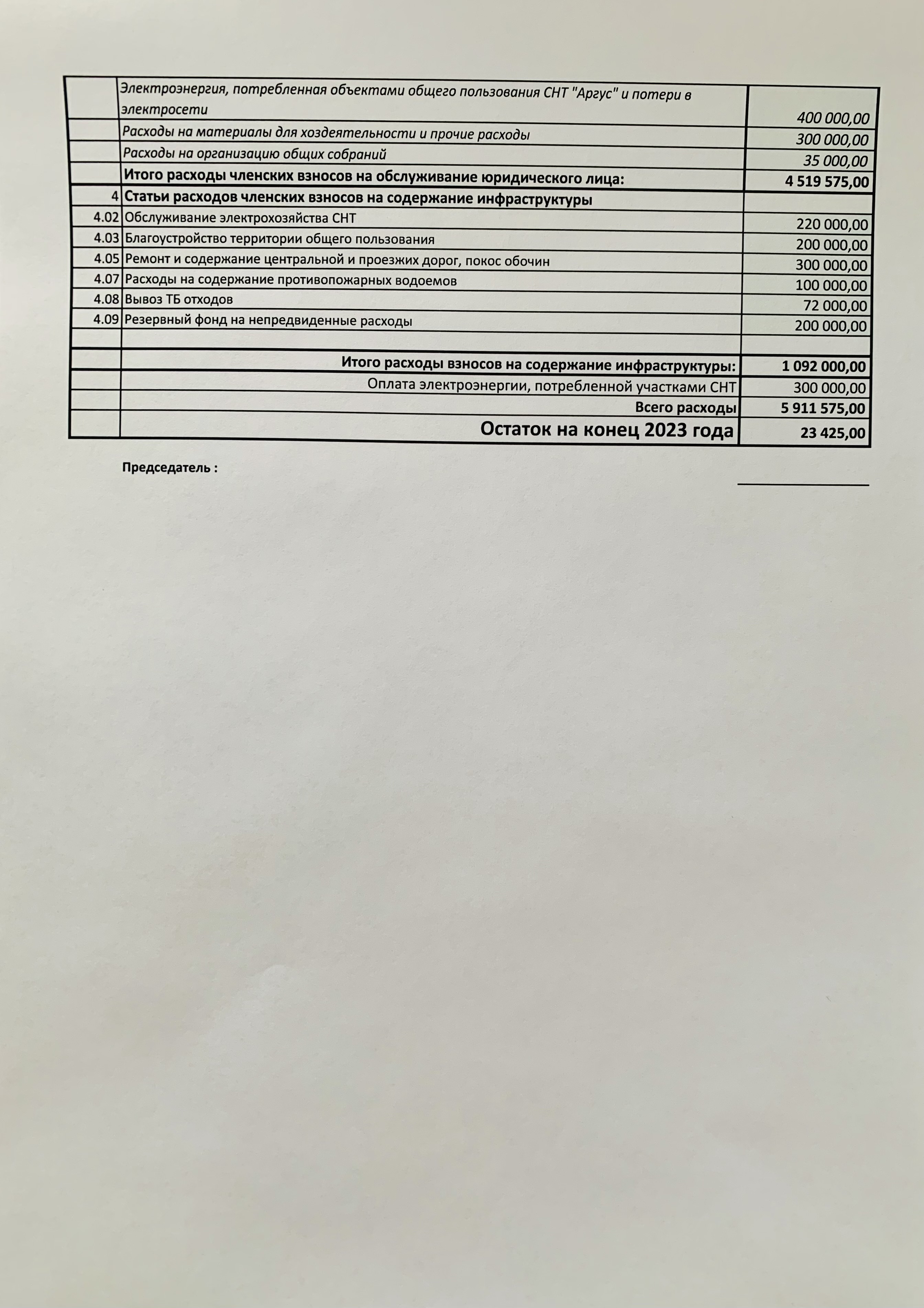 Приходно-расходная смета составлена исходя из статистических данных по поступлению денежных средств на расчетный счет СНТ "Аргус", за предыдущие годы и содержит информацию о величине предполагаемых обязательных расходов в сезоне 2023 г., исходя из расценок на товары и услуг к моменту проведения Общего Собрания.