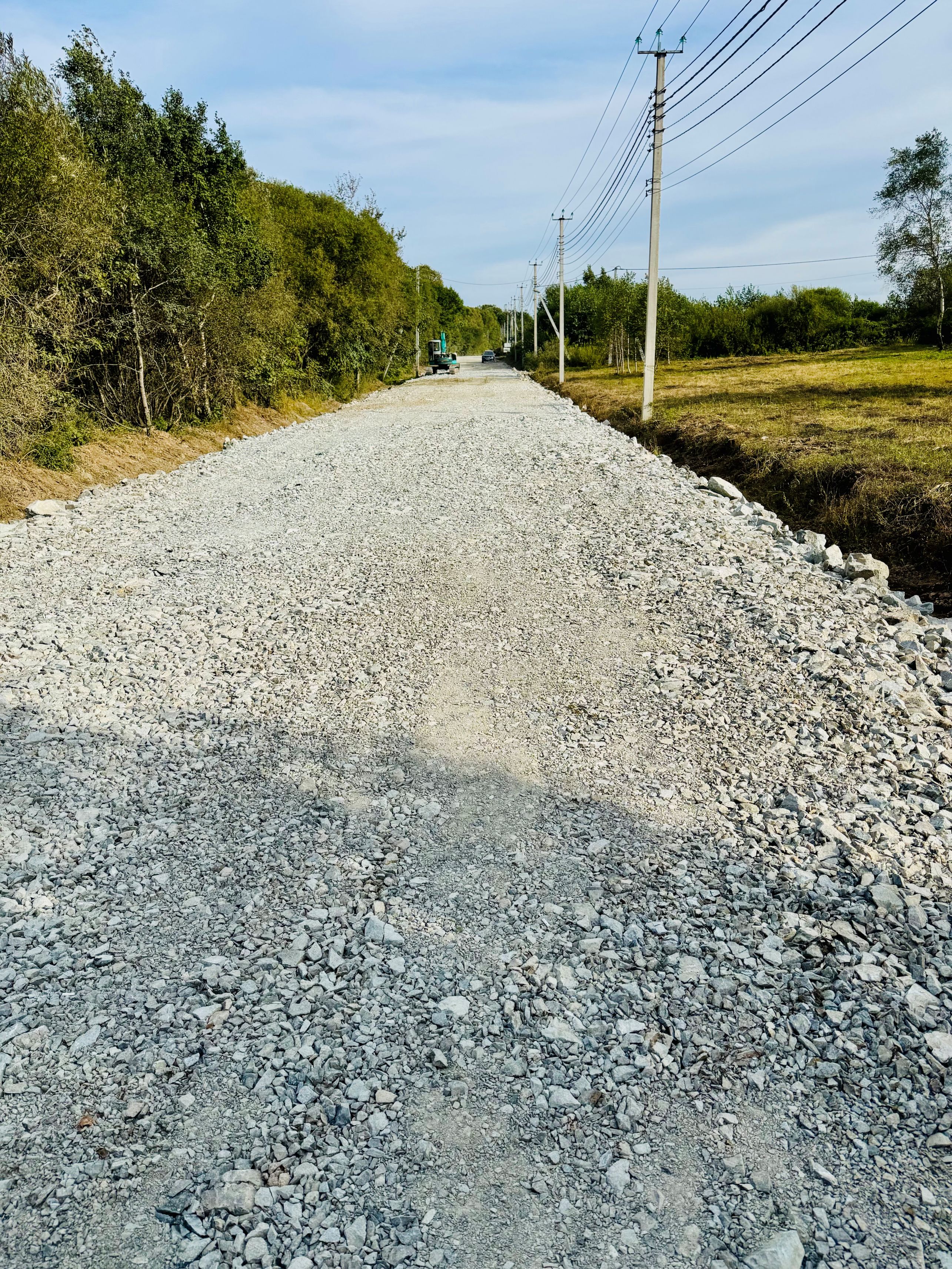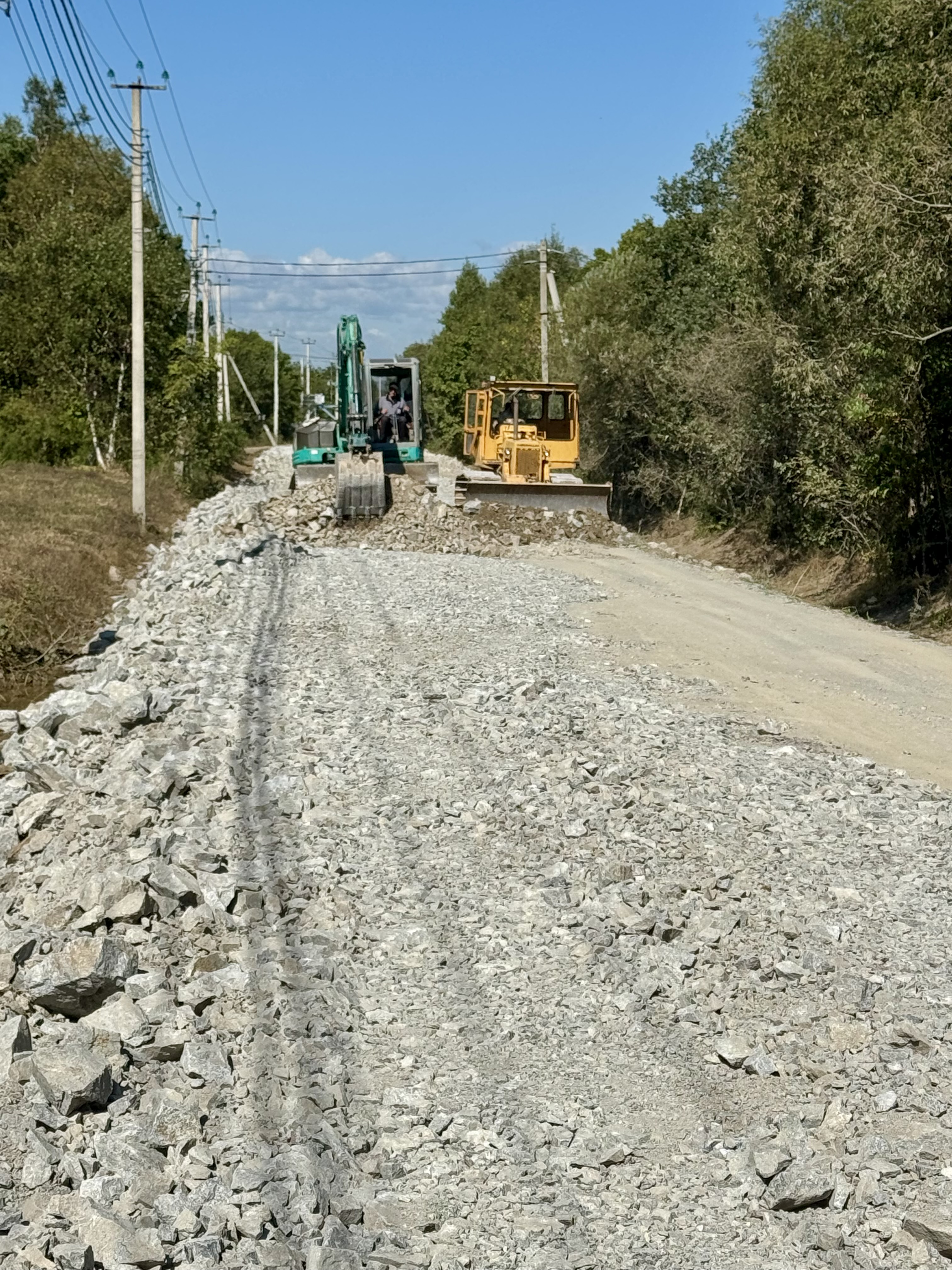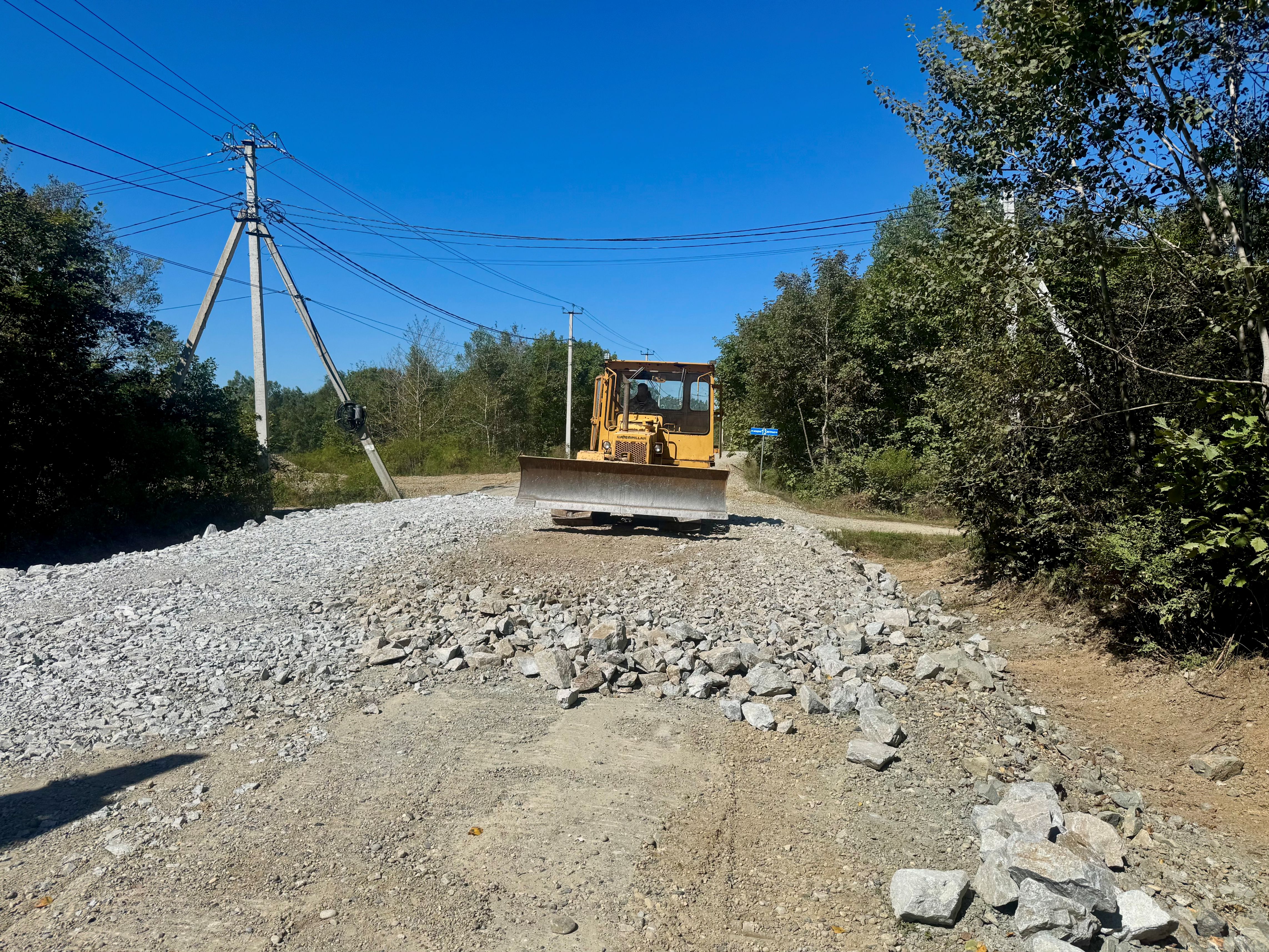 Еще один участок главной дороги Товарищества между улицами 10-я и 13-я (270 м.погонных) был укреплен скальным грунтом, отсыпан песчано-гравийной смесью и уплотнен виброкатком